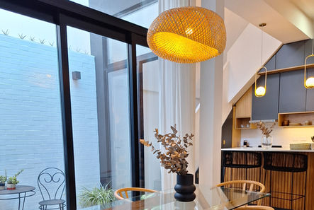 Remodelación integral de vivienda. El proyecto incluyó la renovación completa de la cocina, el comedor, el baño, el patio interno y el living, con el objetivo de modernizar los espacios, optimizar la funcionalidad y generar una mayor conexión visual entre los ambientes. Se trabajó en la incorporación de materiales nobles, iluminación natural y detalles de diseño que aportan calidez y armonía al conjunto.